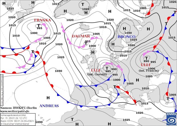 Головним погодним «героєм» найближчої ночі та ранку 9 січня стане циклон Ulli. Саме він зумовить опади майже по всій країні у вигляді: