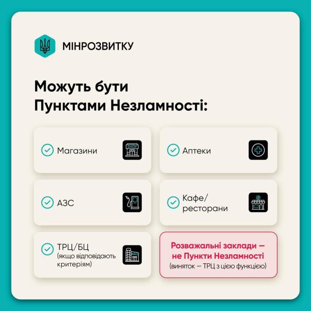 Отдельное важное решение касается смягчения комендантского часа для бизнеса. Кабинет Министров разрешил работать в ночное время заведениям, официально выполняющим функцию Пунктов Несокрушимости.